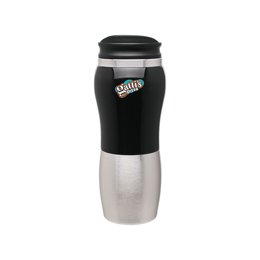 This acrylic-accented ETS Black Maui Fusion Stainless Steel Tumbler 14 oz flaunts a glossy body topped with a push-on swivel lid. Its interior is lined with foam insulation that can hold heat for hours. Lightweight, sleek, and sturdy, this tumbler will make perfect corporate giveaway and can be customized with logo for corporate gift or mementos.