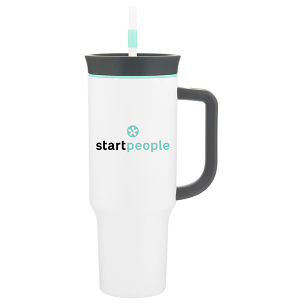 The Owala Cloudscape 40 oz Tumbler keeps your ice-cold drinks on hand for all-day sipping. The adjustable handle allows for a comfortable grip for both left and right-handed users. Choose from sipping with a straw or swigging through the sprout. Add a custom logo and watch the bright eye-catching color combinations highlight the customization.