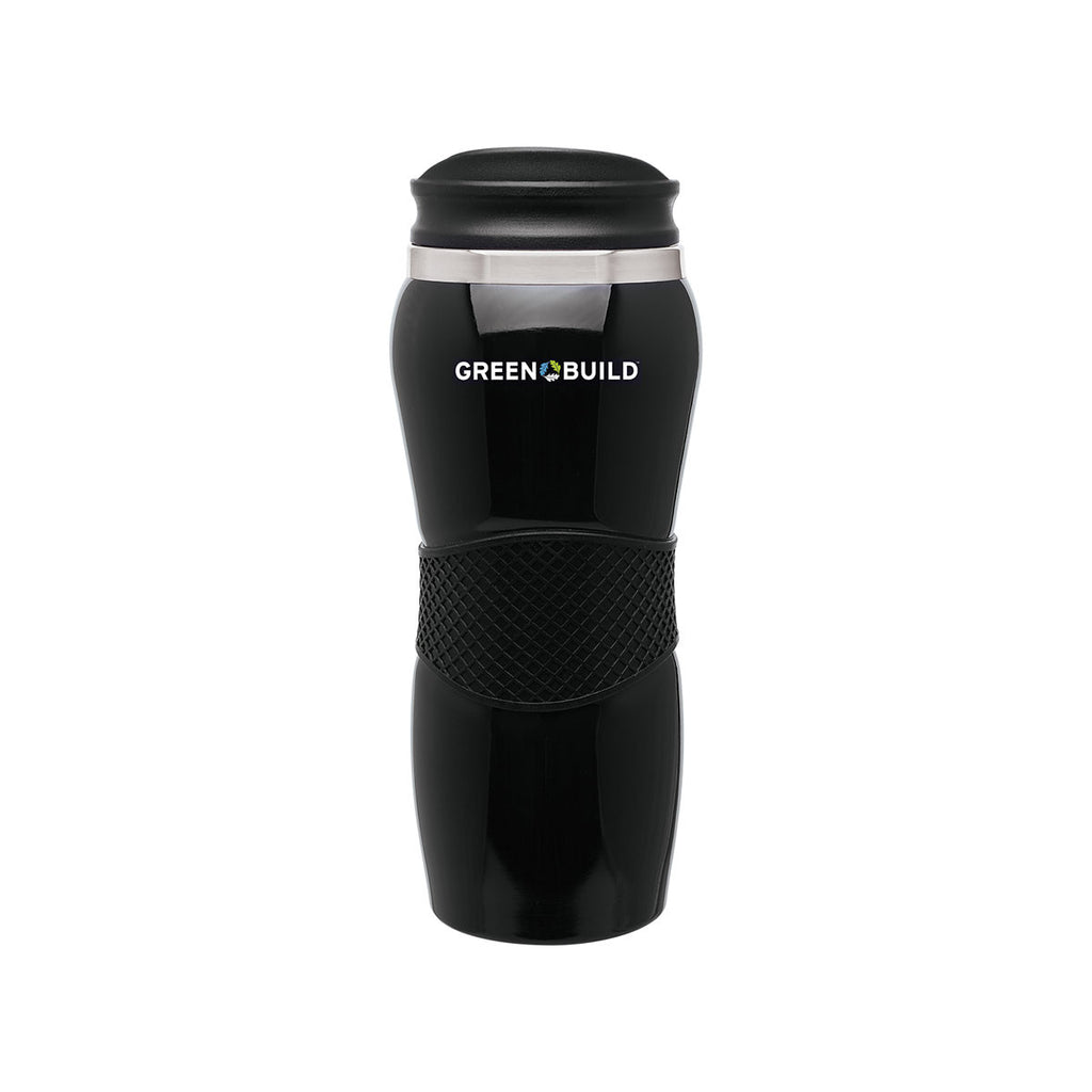 An elegant and stylish ETS Black Maui Gripper Stainless Steel Tumbler 14 oz with foam insulation to keep you hydrated 24/7. It features a push-on swivel lid for effortless on-the-go usage and a curved grip ensures a secure grasp. It can be customized with your company's logo for a corporate gift.