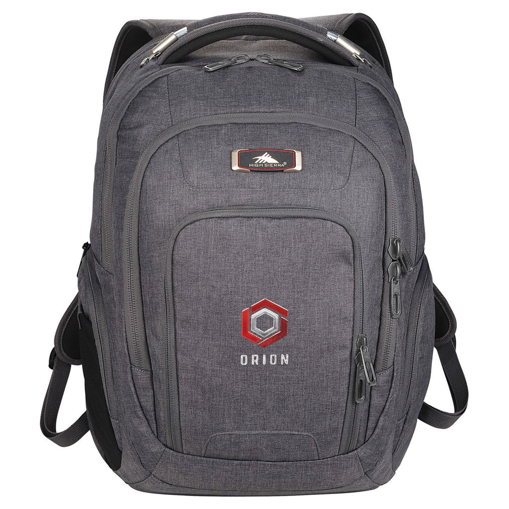 With many workbooks being larger than ever before, the High Sierra Grey 17" Computer UBT Deluxe Backpack is a necessity. This bag can be logoed with your emblem appearing on the main body. Several zippers are included all around, including one for the main compartment with a padded surface for the computer. With your added custom logo, this bag is a useful gift for workers who travel regularly.