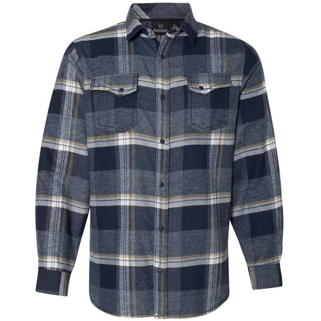 Build your custom look with a Burnside Men's Indigo Snap Front Long Sleeve Plaid Flannel Shirt in three color options. The cotton, polyester blend is easy to wear or layer with snap closure front, two chest pockets with snaps, and snap cuffs. The half back yoke and modern fit will look amazing with a custom logo that is then used as part of employee apparel for a variety of jobs. The plaid is on point for outdoor events or as work wear with embroidery in your choice of design. Place your order for a few or for many today to update your look on the job or at home.Highlights