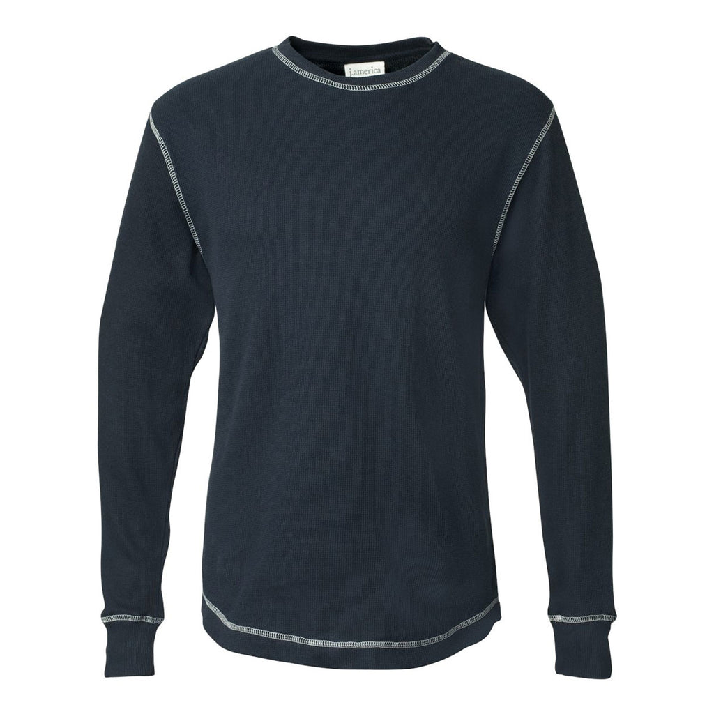 One-hundred percent cotton fabric designed for the company logoed J. America Men's Vintage Navy/Vintage White Vintage Long Sleeve Thermal T-Shirt feels super soft on the skin. The cotton fabric resists rips and tears to give you years of fashionable high performance use. Contrast color flat lock stitching enhances the appearance of the J. America corporate apparel. The contoured bottom hem presents a refined look that helps you settle into weeklong business seminars. Attach a custom logo on the t-shirt to turn the potential customers you meet into lifelong patrons of your business. Wear the versatile long sleeve t-shirt to work and keep it on afterwards when you dine at your favorite restaurant.Highlights