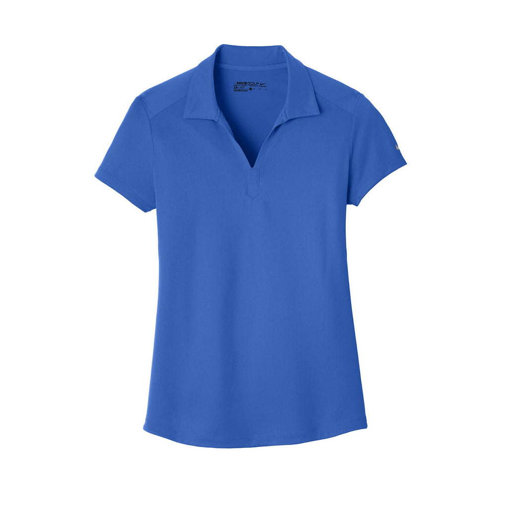 Before the next corporate golf tournament, order the logoed Nike Women's Game Royal Dri-FIT Legacy Polo to make a fashionable statement that professional peers will notice. Make the attention work for your company by attaching your corporate logo on the large imprint area. Proprietary Dri-FIT technology wicks discomfort away all-day long. The subtle, grid-like texture complements the visually appealing open hem sleeves, self-fabric collar, and dyed-to-match buttons. Wear the versatile polo on the links and afterwards during the awards show. The classic Nike swoosh logo on one side of the chest complements the stylish corporate logo you attached on the other side.