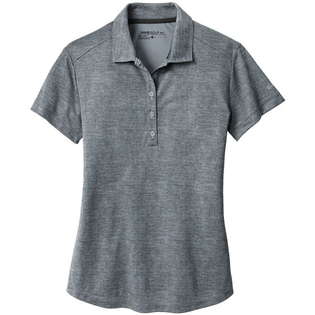 Your company logo deserves the absolute best when it comes to co-branded clothing for women. Enter Nike, the world's premier brand in athletic apparel and sportswear. These personalized Nike Women's Cool Grey/Anthracite Dri-FIT Crosshatch Polo are worthy of the iconic Nike swoosh logo and are worthy of your custom embroidered corporate logo too. These women's golf polo shirts are made from Nike's high-tech Dri FIT performance fabric that's designed to be breathable and moisture-wicking, so you stay cool and dry on the course or in the office.