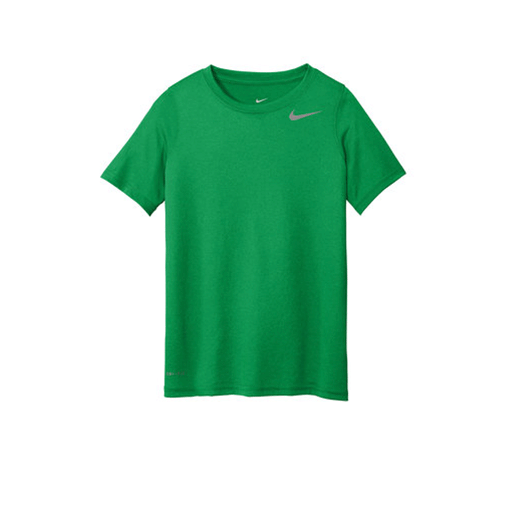 Create a custom team uniform with the Nike Youth Apple Green Legend Tee. This youth version of the Legend tee is a Nike staple in athleisure apparel that can serve many functions. Add a company logo to use as a uniform for a sports team that you support or a custom logo to offer for younger people who are part of your organization or cause. The legendary tee offers Dri-FIT technology to wick away sweat whether playing the infield, enjoying a pick-up game at the park, or working out on your own. Highly durable with tag free comfort, this polyester jersey is lightweight and ready for whatever you do.