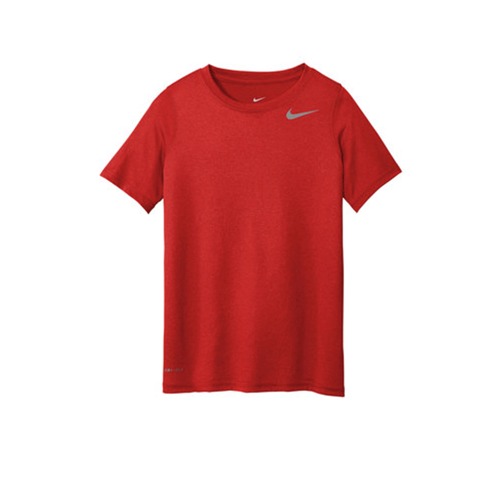 Create a custom team uniform with the Nike Youth University Red Legend Tee. This youth version of the Legend tee is a Nike staple in athleisure apparel that can serve many functions. Add a company logo to use as a uniform for a sports team that you support or a custom logo to offer for younger people who are part of your organization or cause. The legendary tee offers Dri-FIT technology to wick away sweat whether playing the infield, enjoying a pick-up game at the park, or working out on your own. Highly durable with tag free comfort, this polyester jersey is lightweight and ready for whatever you do.