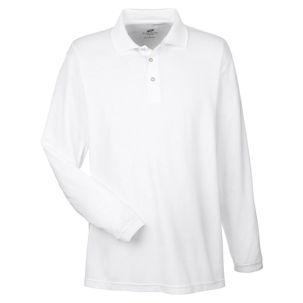 UltraClub Men's White Cool & Dry Sport Long-Sleeve Polo