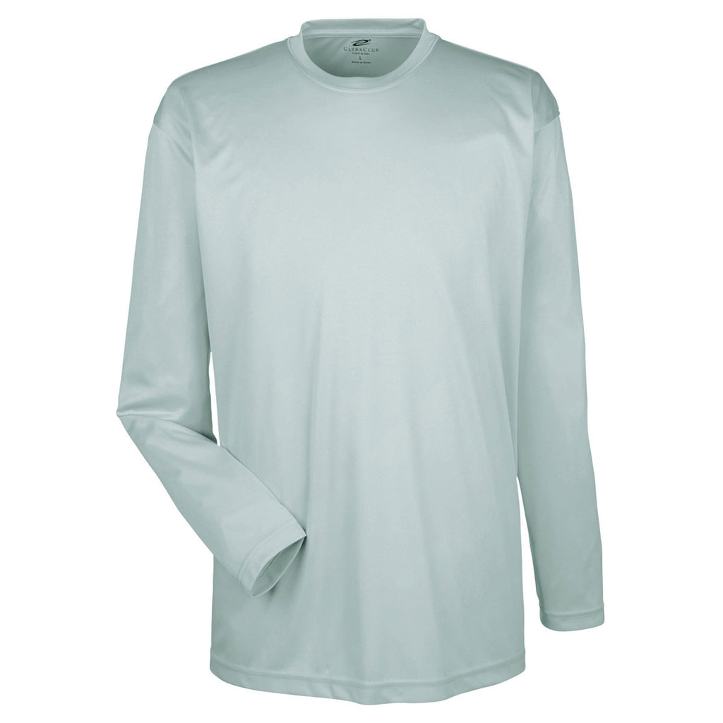 UltraClub Men's Grey Cool & Dry Sport Long-Sleeve Performance Interlock T-Shirt