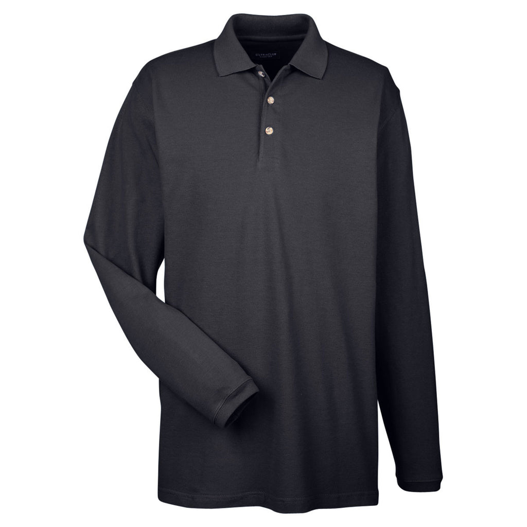 UltraClub Men's Black Long-Sleeve Classic Pique Polo