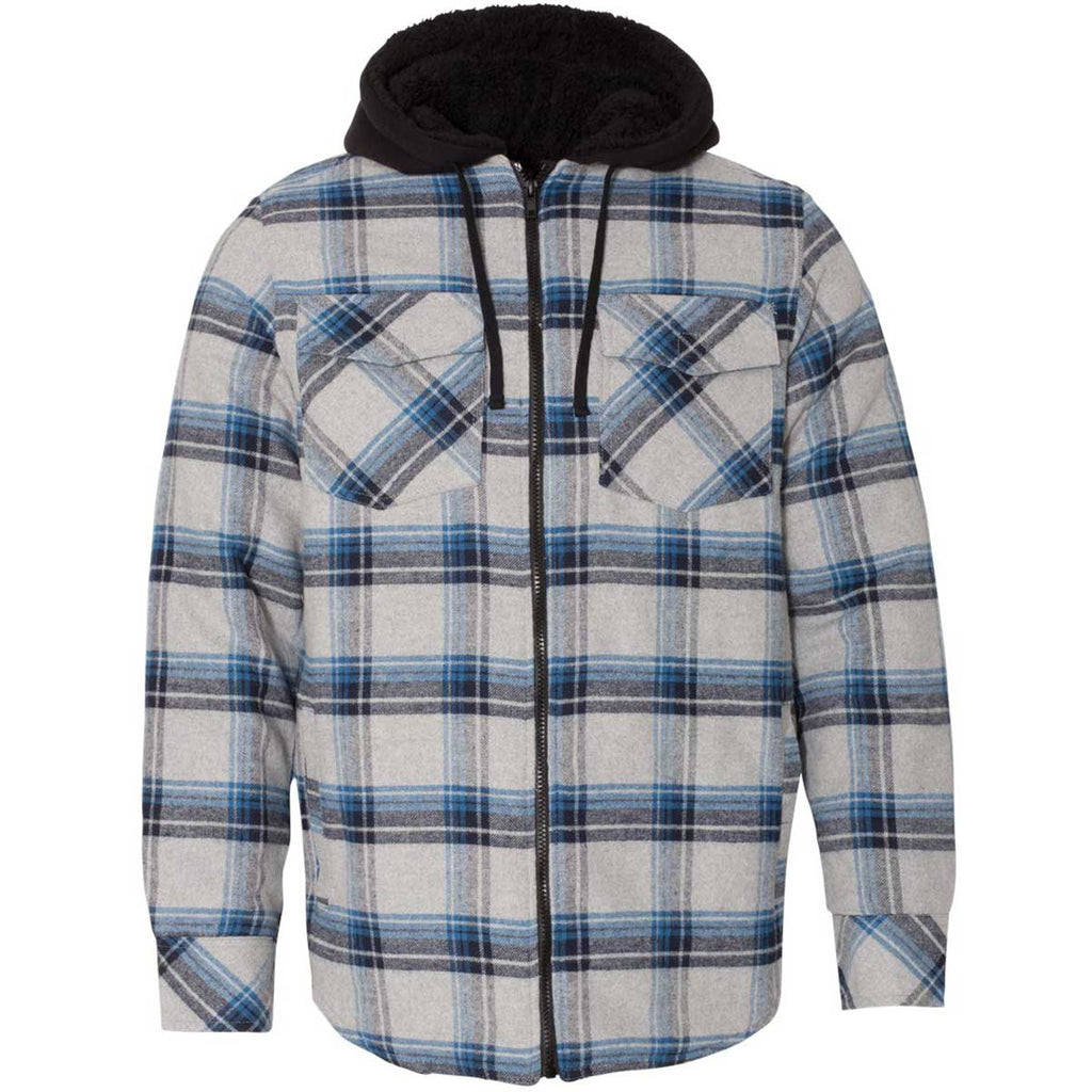 Burnside Men's Grey/Blue Quilted Flannel Full-Zip Hooded Jacket