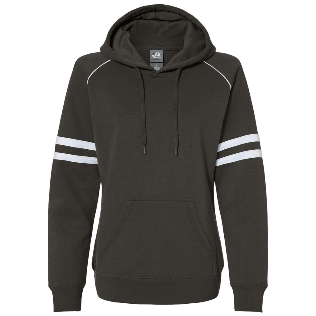 J. America Women's Black Varsity Fleece Piped Hooded Sweatshirt