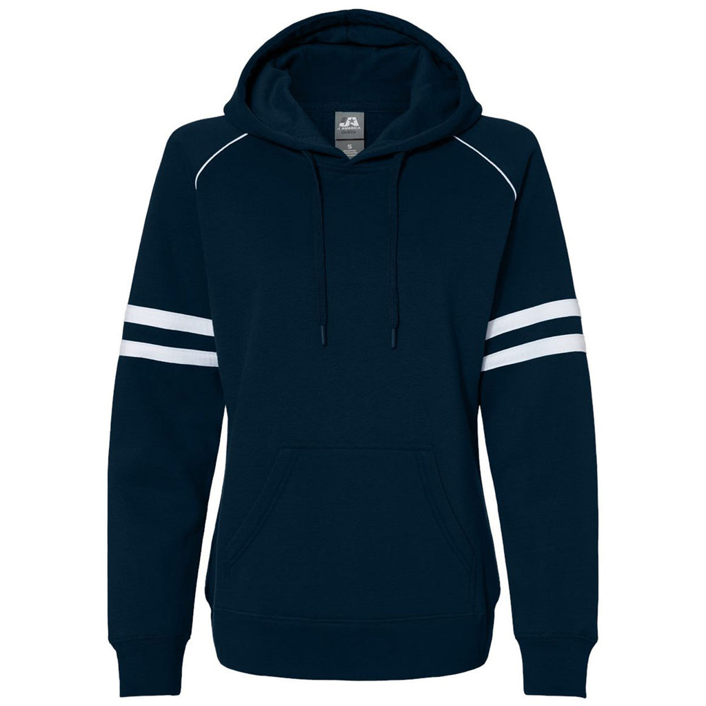 J. America Women's Navy Varsity Fleece Piped Hooded Sweatshirt