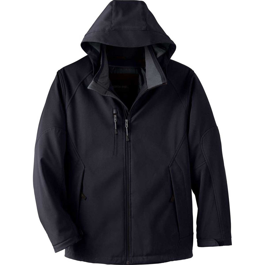 North End Men's Black Glacier Insulated Three-Layer Jacket with Detachable Hood