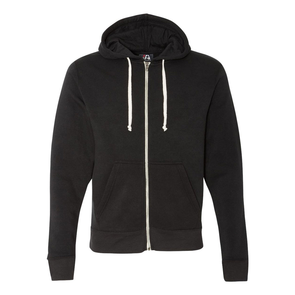 J. America Men's Solid Black Triblend Triblend Hooded Full-Zip Sweatshirt