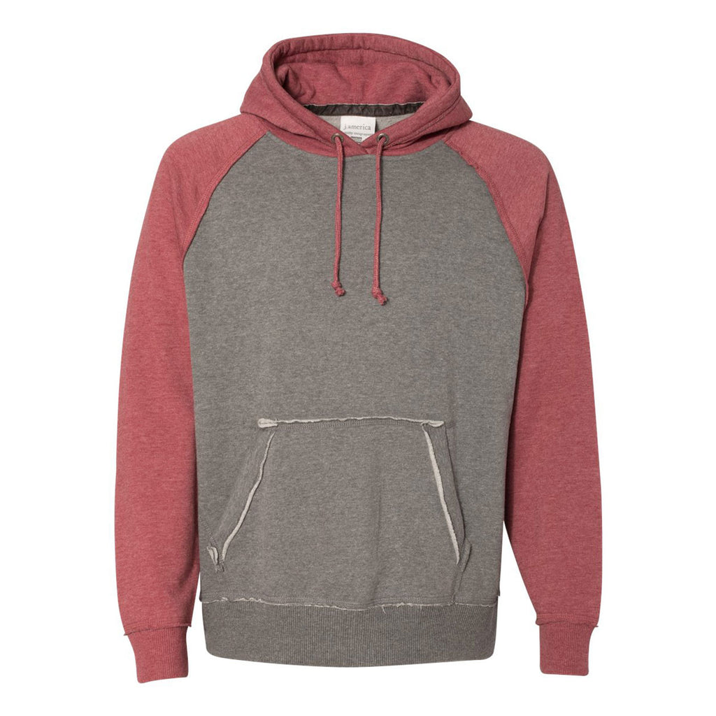 J. America Men's Smoke Heather/Simply Red Heather Vintage Heather Hooded Sweatshirt