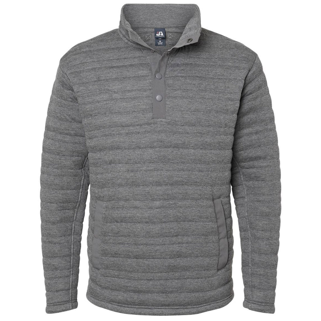 The J. America Men's Charcoal Heather Horizon Snap Pullover is a thoughtfully designed layering piece that is ready to show off your company's custom logo or design. A polyester fill keeps warmth trapped inside, making it great for chilly weather conditions. The sleek silhouette also makes it ideal for audiences of all demographics.