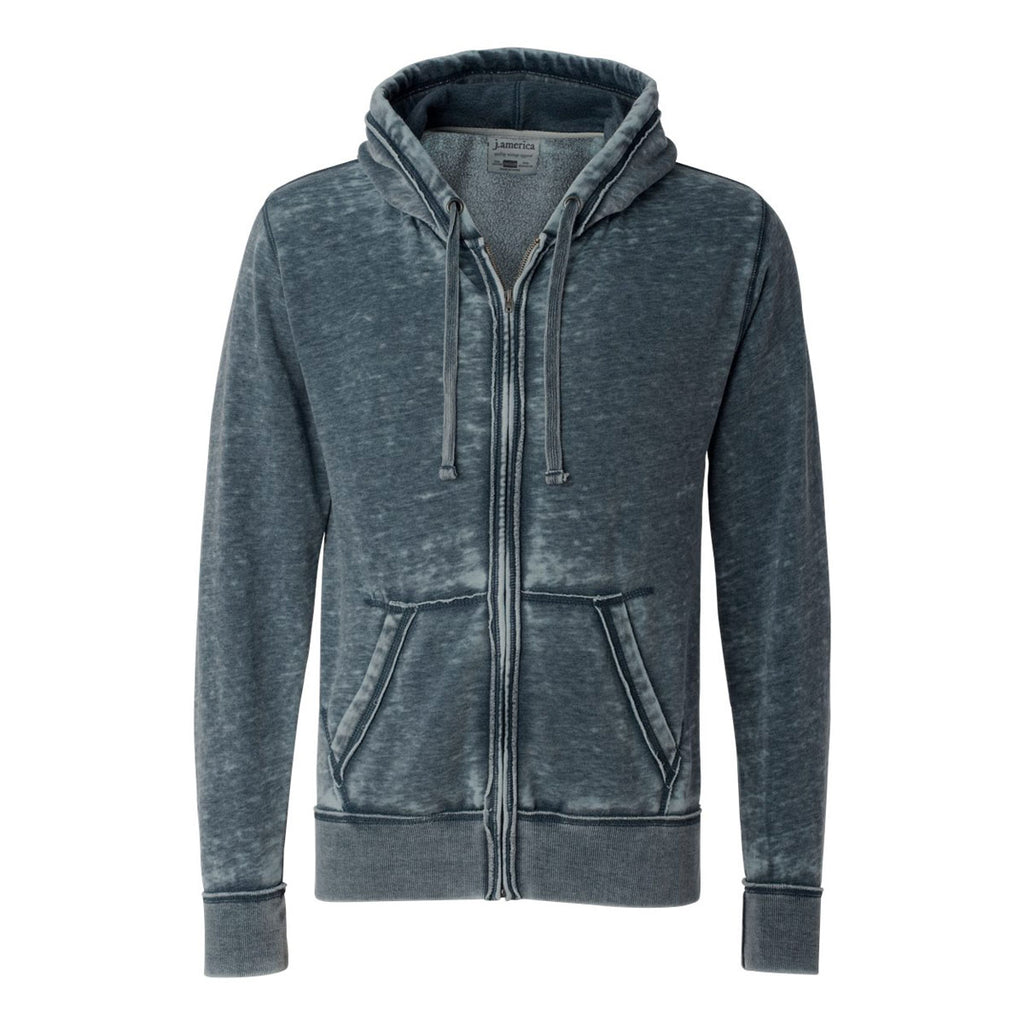 Thank your loyal customers by giving the custom logoed J. America Men's Navy Vintage Zen Fleece Full-Zip Hooded Sweatshirt. Flat lock stitching sewn into the stylish corporate apparel strengthens the tightly woven cotton and polyester fabric. Wear the full-zip hooded pullover as an outer layer during spring and as the middle layer for a cold weather outfit. Acid burnout fleece with a shiny silicone finish will get you noticed on the golf course. When you receive praise for wearing the fashionable sweatshirt, extend the praise to your company by displaying the corporate logo added on the large imprint area.Highlights