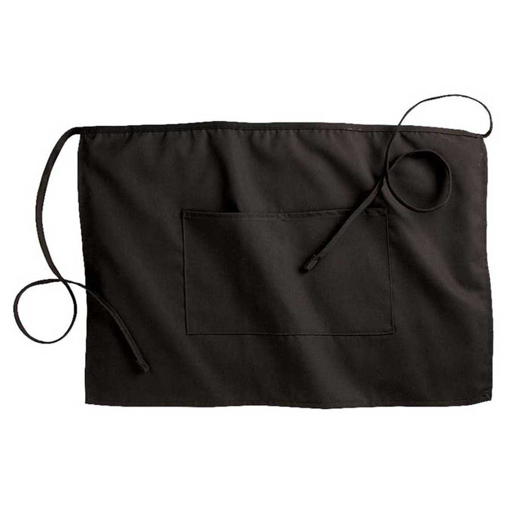 A custom Edwards Black 2-Pocket Half Bistro Apron is a must have for those in many industries. This simple, classic 2-pocket waist apron can be embroidered with your company logo or corporate brand as a great way to personalize a uniform or employee apparel for those working in the food industry in some form or fashion, especially wait staff. Made of a polyester cotton twill blend this apron can be machine washed as needed. Add your custom logo to the adjustable half bistro apron with long ties for front and back closure. The one size fits most style means both men and women can comfortably wear this apron while working.Highlights