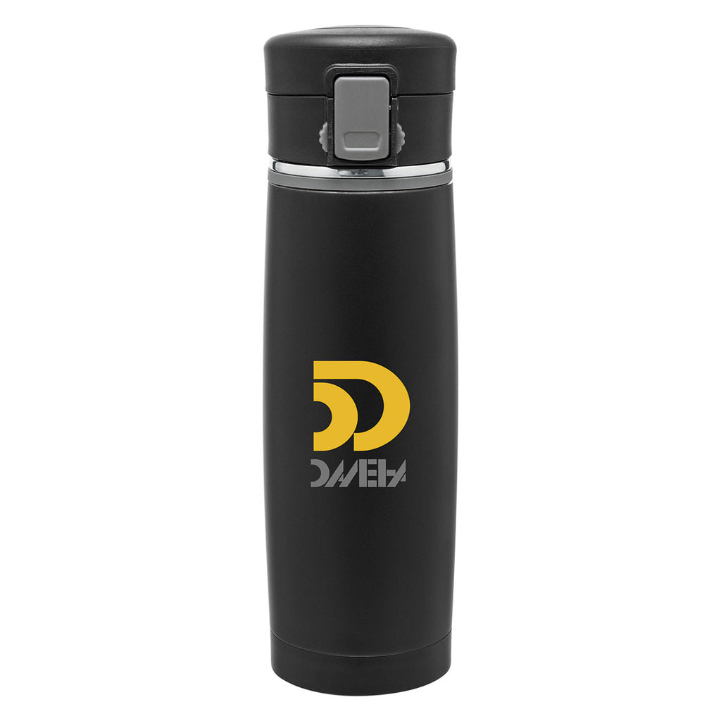 This ETS Black/Storm Grey Viper Black Stainless Steel Tumbler 16 oz has all you need for on-the-go hydration - double wall design, ample 16 oz capacity, copper insulation, and lockable push-button lid. As a corporate giveaway, it will be appreciated by the recipient and will make a permanent reminder of the company or brand.