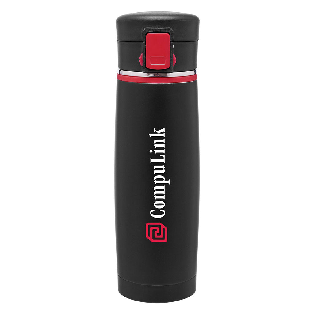 This ETS Black/Red Viper Black Stainless Steel Tumbler 16 oz has all you need for on-the-go hydration - double wall design, ample 16 oz capacity, copper insulation, and lockable push-button lid. As a corporate giveaway, it will be appreciated by the recipient and will make a permanent reminder of the company or brand.