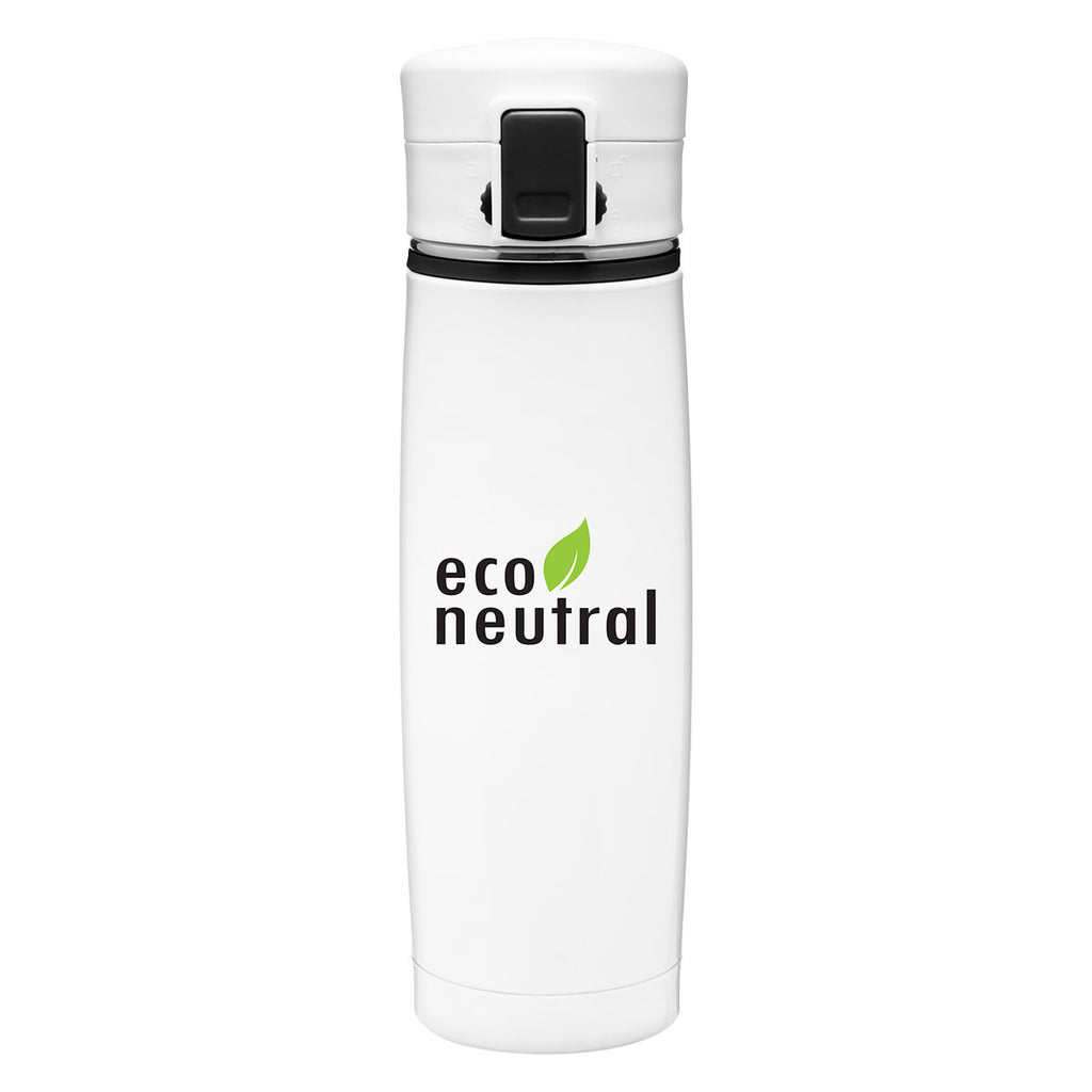 Copper vacuum insulation fused with 18/8 grade stainless steel construction, lock mechanism, and push-button lid highlights this 16oz. tumbler. It keeps drinks fresh at an optimum temperature for hours. An ample print space allows ETS White/Black Viper White Stainless Steel Tumbler 16 oz to feature custom logo imprint for use as a corporate gift or in promotional campaigns.