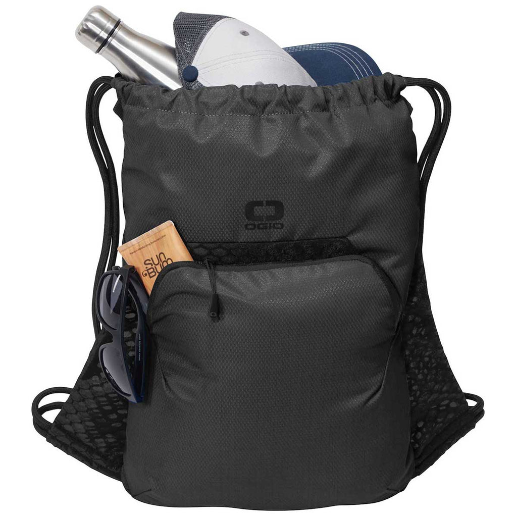Work, school, and errands just got easier with the custom OGIO Tarmac Boundary Cinch Pack. Made of 300D poly PU, this cinch pack is perfect for carrying daily needs to and from the office, the gym, or the next team event. The drawstring top with durable straps, front zippered pocket where your custom logo will appear, and spacer mesh accents make this the perfect choice as a daily carry. Add a company logo to offer these as employee gifts for the holidays or a special occasion. The cinch strap does buckle to make sure your items do not fall out while going about your day.