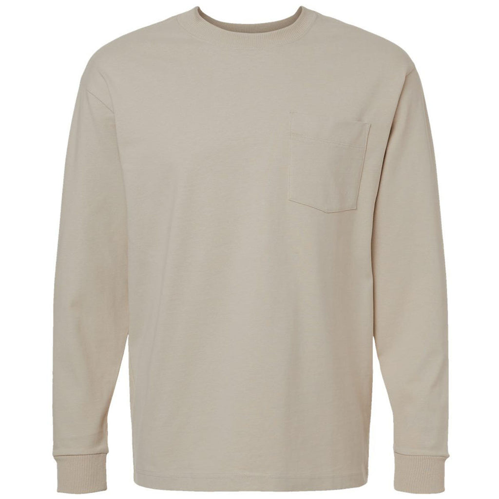 American Apparel Unisex Bone Super Heavyweight Long Sleeve Pocket Tee with a custom logo offers an oversized fit that keeps you comfortable all day long. The relaxed-fitting tee is a must-have for layering and relaxing, whether that means playing a pick-up game of basketball, working out, or just chilling as you watch the big game.