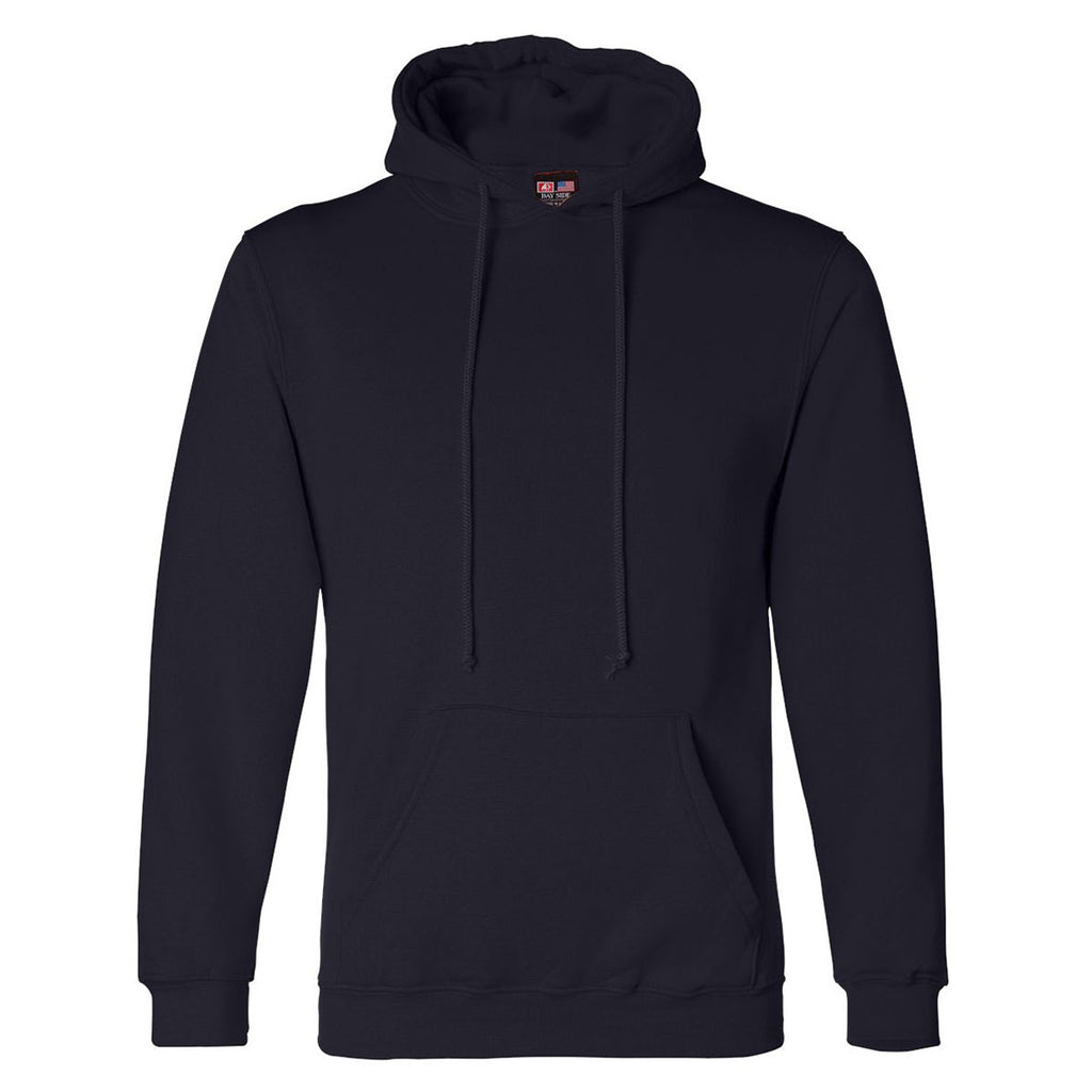 The Bayside Men's Navy USA-Made Hooded Sweatshirt can fill your company uniform needs with the addition of your company's custom logo on the chest or sleeve. There's sure to be a color choice that can help your custom logo stand out. It can help service and delivery workers get the job done outdoors in chilly weather, and people at every level of your company can wear this sweatshirt during their leisure time, while helping to promote your company name. The logoed Bayside Men's Navy USA-Made Hooded Sweatshirt also would work well as warm-up wear for company athletic events. These hoodies would also be thoughtful employee gifts or incentive-program rewards.Highlights