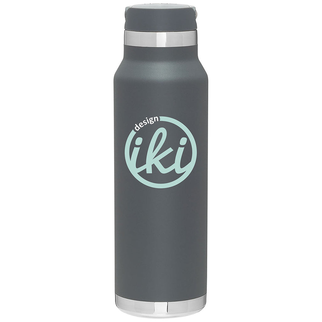 Keep your team plenty hydrated by providing them with a H2Go Matte Slate 25 oz Voyager Bottle that displays your company or team's custom logo. The sleek design and powder coated finish give it a timeless look that will never go out of style, while copper vacuum insulation means the drink inside will always remain at an ideal temperature.