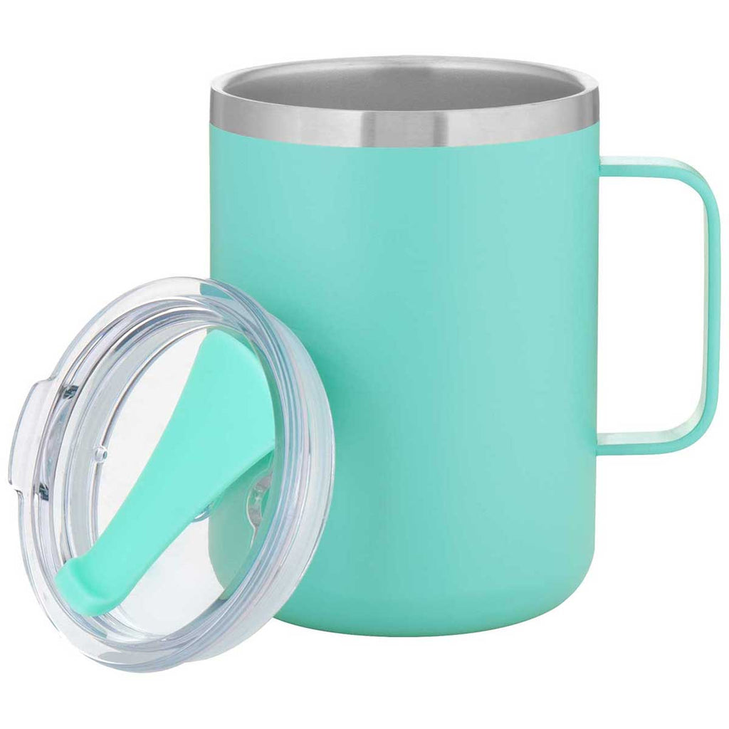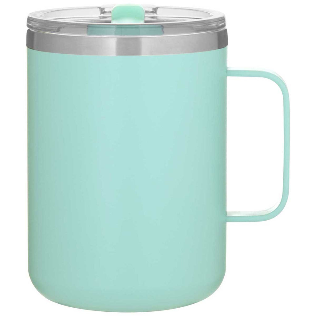 Choose the custom ETS Matte Mint Camper 16.9 oz Stainless Steel Thermal Mug if you’re looking for your next coffee break buddy. The Camper’s double-wall, vacuum insulated interior keeps your beverage hot or cold for hours – and the powder-coated finish means that the mug will never sweat and leave water rings on your tables. Enhance its look with your custom logo – turn the mug into an instant event giveaway or employee gift!
