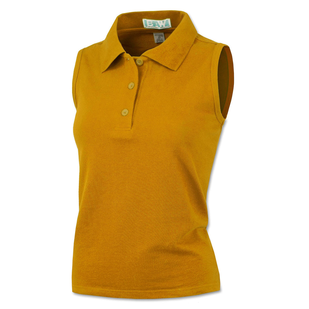 If you really want to please the ladies with a sleeveless logoed polo that is everything they could want in a shirt, the BAW Women's Gold Sleeveless Polo is the one to buy! This is a quality garment that is easy on the budget. It is made from cotton, which is a natural fiber. The pre-shrunk pique knit should be gentle on all skin types, especially with those sensitive to synthetic materials. This is a traditional polo in every sense of the term with the half-moon yoke, extended tail and side vents. There is also single needle top stitching on shoulders and arm seams. Choose from an assortment of colors including red, navy and heather grey in sizes from XS to 2X.