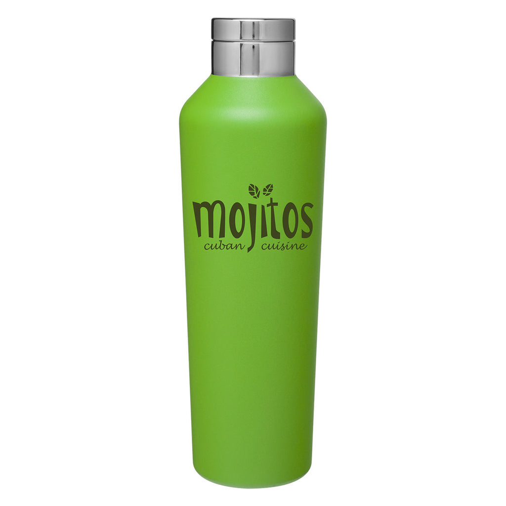 Sport your company's custom logo or tagline everywhere with this 20.9 oz. H2Go Matte Lime Manhattan Tumbler. Made from stainless steel, it does not retain beverage taste. Perfect for a promotional event, customize with a name or logo and give out employees or customers. Comes equipped with threaded steel insulated lid, and powder coated finish. An economical way to enlighten customers about your business or event. Individually retail packaged in gift box.The minimum order for this product is 48 pieces.