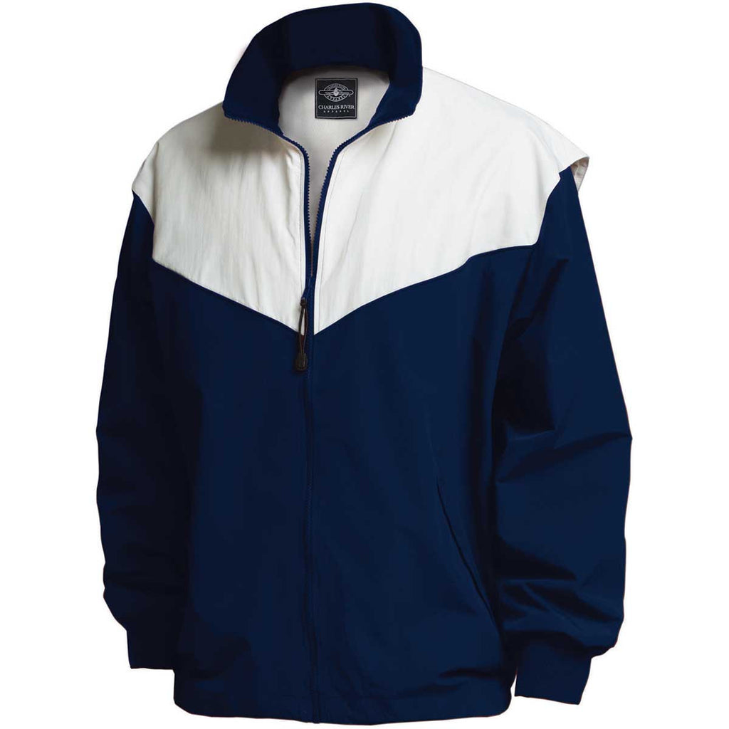 They say that you should dress for the job you want. So if you want to be a champion, maybe this Charles River Men's Navy/White Championship Jacket isn't such a bad idea. Featuring TechLyte that's both wind resistant and water resistant, this is the kind of jacket you need while you train, avoiding wind and rain and continuing to work hard. But there's breathability here, because it doesn't have to be all sweat and sacrifice-it can be comfortable too. The side pockets and the open hem with the drawstring see to that. Now add your custom logo and make this a true jacket of champions.