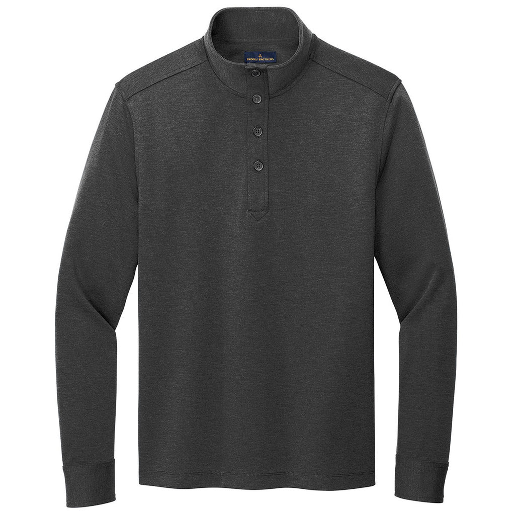 Design a custom embroidery for the Brooks Brothers Men's Windsor Grey Heather Mid-Layer Stretch Half Zip for a look that will take you places. The double-knit style is luxuriously soft and forgoes the typical half-zip style for a buttoned vent with a cadet collar. Rounded button cuffs that can be worn long or rolled up. Add a company logo to use as employee gifts or simply enjoy as everyday attire. Order today.