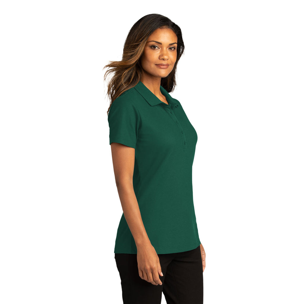 Design a custom embroidery for the Port Authority Women's Marine Green SuperPro React Polo for a look that can go from the office to dinner with friends with complete ease. This classic uniform style meets performance wear in this poly cotton polo that is ready for anything life can bring. Add a company logo to create a corporate uniform that is comfortable and convenient with stain release, snag resistance, and Easy Care qualities. The flat knit collar with five button placket makes this polo easy to layer or wear alone. Enjoy a day with friends, at work, or anywhere you please and look great while doing it.Corresponding Men's Style:Port Authority Men's Marine Green SuperPro React Polo