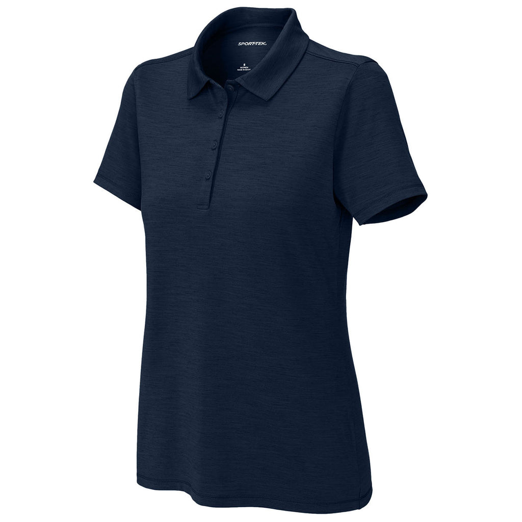 Sport-Tek Women's True Navy Versa Polo with a custom logo is the ideal blend of athletic performance and polished style. Made with moisture-wicking fabric, it keeps you dry while offering a flattering fit. Whether at the gym, on the golf course, or at work, this polo provides the comfort and functionality you need, all with a sleek, modern design.Corresponding Men's Style: Sport-Tek Men's True Navy Versa Polo