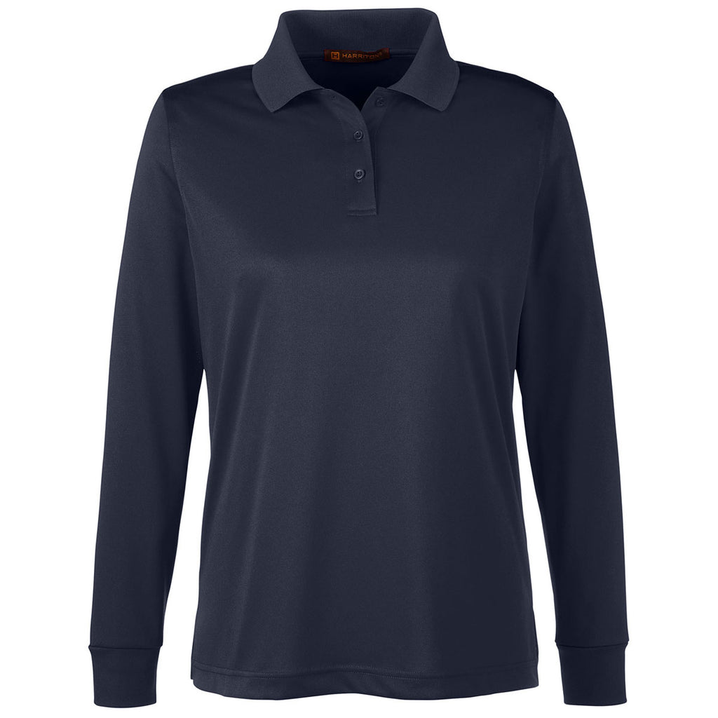 Harriton Women's Dark Navy Advantage Snag Protection Plus Long Sleeve Polo