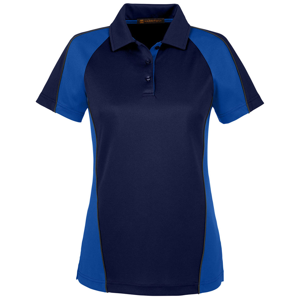 Choose a company logo for the Harriton Women's Dark Navy/True Royal/Dark Charcoal Advantage Snag Protection Plus Colorblock Polo for employee apparel that is unparalleled. These polyester jersey polos have color pops in all the right places to create a feminine silhouette that all can appreciate. The short sleeve polo is made to face whatever the day has in store with moisture wicking and antimicrobial properties with UV 15-29 protection depending on color choice. Add embroidery to create a custom gift that will enhance any wardrobe and can be appreciated by all.Corresponding Men's Style:Harriton Men's Dark Navy/True Royal/Dark Charcoal Advantage Snag Protection Plus Colorblock Polo