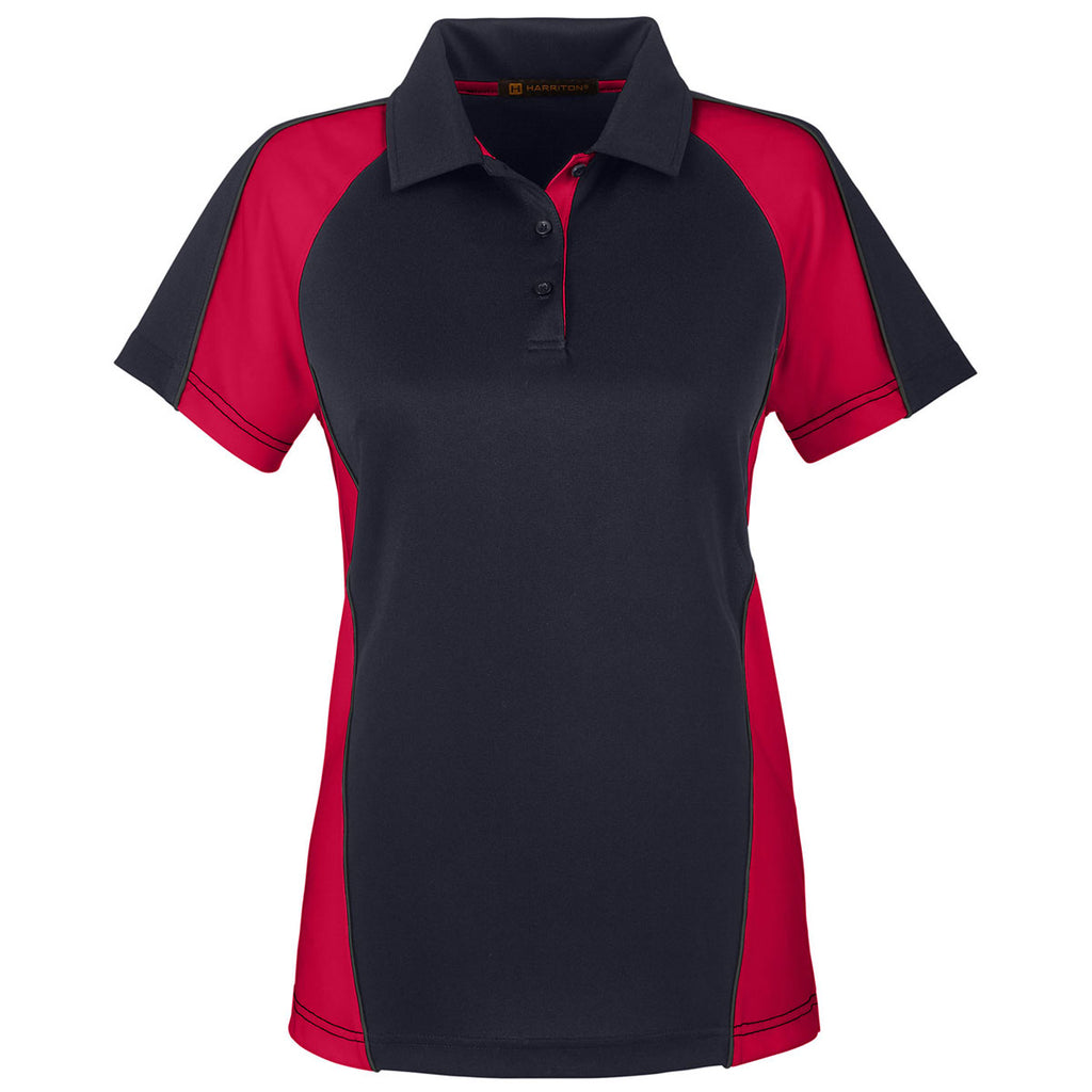 Harriton Women's Black/Red/Dark Charcoal Advantage Snag Protection Plus Colorblock Polo