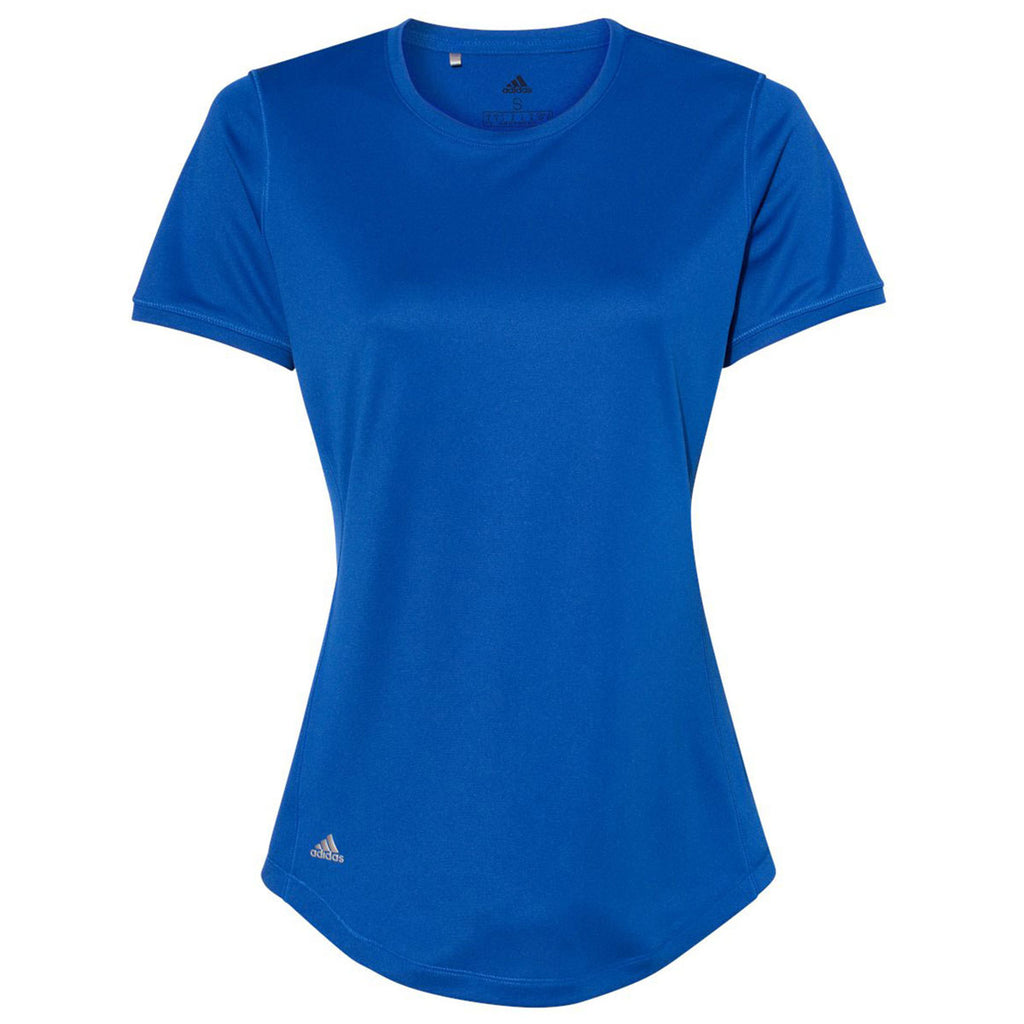 Hit the gym in a custom screen print Adidas Women's Collegiate Royal Sport T-Shirt. Made of 100% recycled polyester pique, this tee is good for the environment and your growing wardrobe. Add a custom logo to this crewneck sport shirt to use for team events or even employee apparel. The hydrophilic finish with UPF 50+ protection means this t-shirt can be worn outdoors all day and still remain comfortable, A curved hem offers extra coverage whether lifting weights or playing outdoors with the kids. Place an order today for these tees with a company logo to use as employee gifts that will be appreciated throughout the year.