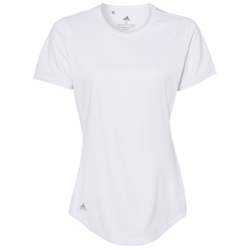 Hit the gym in a custom screen print Adidas Women's White Sport T-Shirt. Made of 100% recycled polyester pique, this tee is good for the environment and your growing wardrobe. Add a custom logo to this crewneck sport shirt to use for team events or even employee apparel. The hydrophilic finish with UPF 50+ protection means this t-shirt can be worn outdoors all day and still remain comfortable, A curved hem offers extra coverage whether lifting weights or playing outdoors with the kids. Place an order today for these tees with a company logo to use as employee gifts that will be appreciated throughout the year.