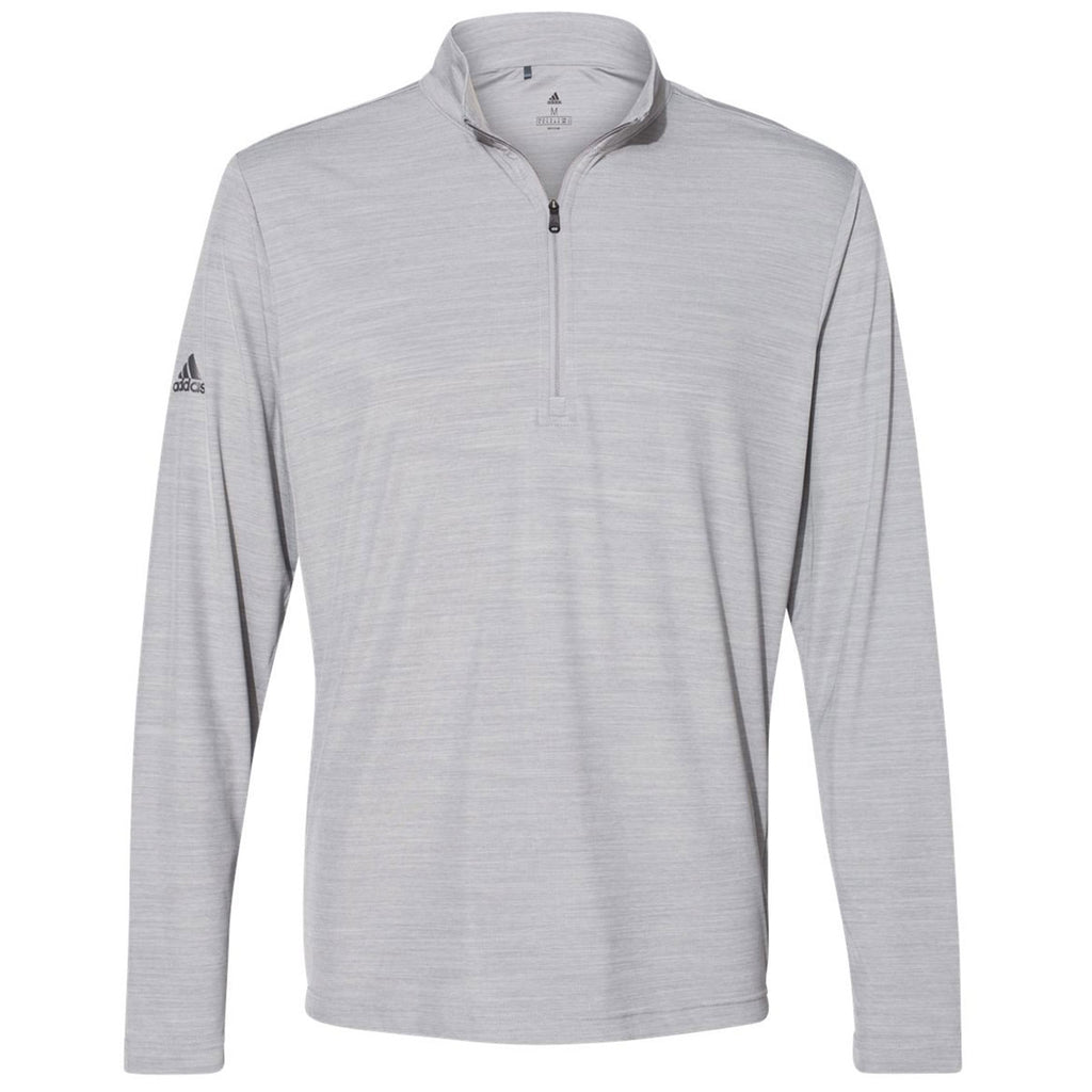 Create a unique custom look with the Adidas Men's Mid Grey Melange Lightweight Quarter Zip. This sleek lightweight quarter zip is made of 100% recycled polyester interlock knit for an easy to wear design that will be a big hit. Whether adding a custom logo and using as part of athleisure apparel for a team event or a company embroidery to use as an employee gift, this pullover is a must have. The moisture wicking material with a UPF 50+ rating is perfect for enjoying the outdoors while hiking, biking, or hanging out with friends.