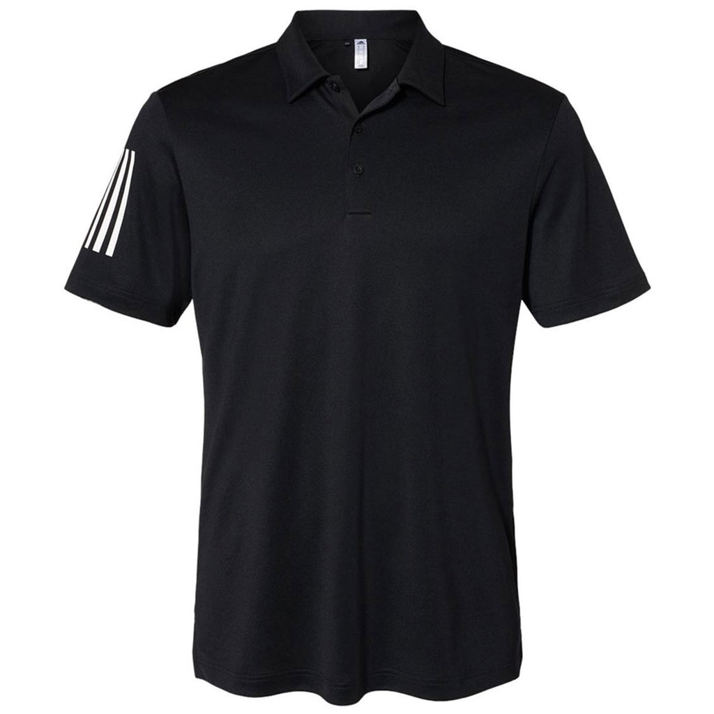 Add embroidery to the Adidas Men's Black/White Floating 3-Stripes Sport Shirt for a professional, high-end look that will turn heads. A company logo turns this sport shirt into an excellent uniform top or employee apparel. Made of 100% recycled polyester this sport shirt will look great whether paired with a sports coat for a professional conference or worn alone to hit a few balls on the driving range. Made with a hydrophilic fabric finish this shirt will keep you dry when you are working up a sweat. Your custom logo will stand out on the sport shirt in the color of your choice.