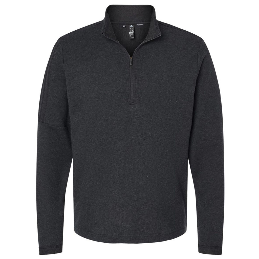 Create a look with a custom Adidas Men's Black Melange 3-Stripes Quarter-Zip Sweater. This upscale sweater offers moisture-management properties and a stand-up collar for that classic look that can truly be appreciated by all. This sweater is perfect for the golf course and the clubhouse after for a drink and snack with friends.