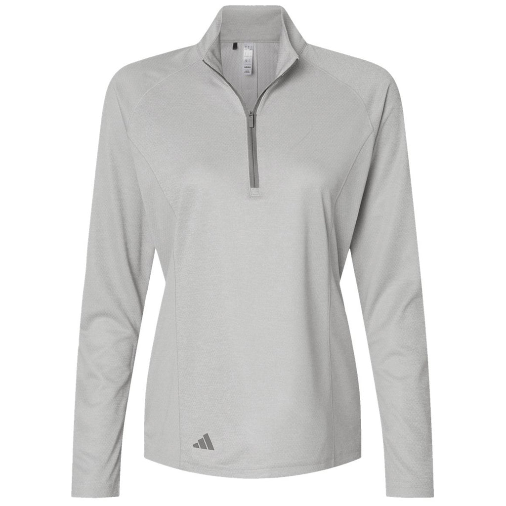Adidas Women's Grey One Heather Space Dyed Quarter Zip Pullover with a custom design offers a unique option when it comes to style. The gorgeous pullover with a stand-up collar and back pleat has a regular fit for all-day comfort. Perfect when worn alone or layered as you run errands, commute to work, or play a quick round of golf.This product cannot ship outside of the United States.