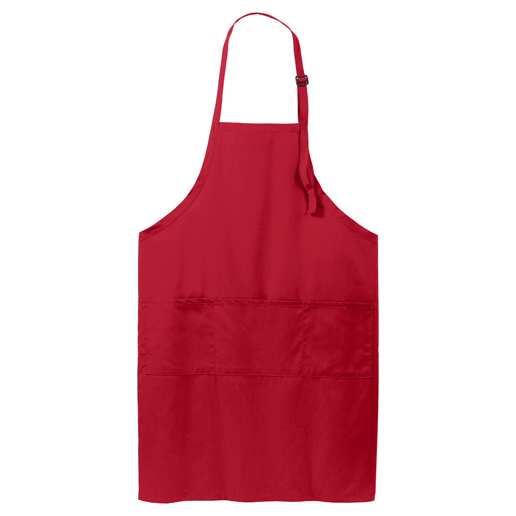 Wearing an apron around the house might not be your thing, but at work, donning an apron means you're ready to get down to business. Make this Port Authority Red Easy Care Extra Long Bib Apron with Stain Release a fine addition to your corporate apparel or company apparel by adding your own team logo to the front. Not only will they look sharp"they'll feel stylish. But even we'll admit they're far superior at their day job: keeping you clean.Highlights