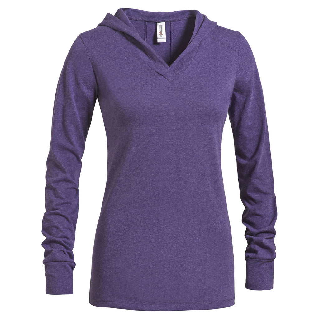 Cut from microfiber-fabric, this ultra-soft and long-sleeve Expert Women's Dark Heather Purple Soft Hoodie delivers comfort and laid-back style. It flaunts a relaxed fit that makes it an awesome layering piece for winter workouts. Low cut neckline makes layering a snap. Slip on this breathable, moisture-wicking performance piece that will perform throughout your sweaty workout session and keep you dry afterward. This custom hooded sweatshirt offers a perfect way to promote your company by sporting your logo only to be noticed at first sight, making it an ideal corporate giveaway item for recipients with an active lifestyle.The minimum order for this product is 12 pieces.