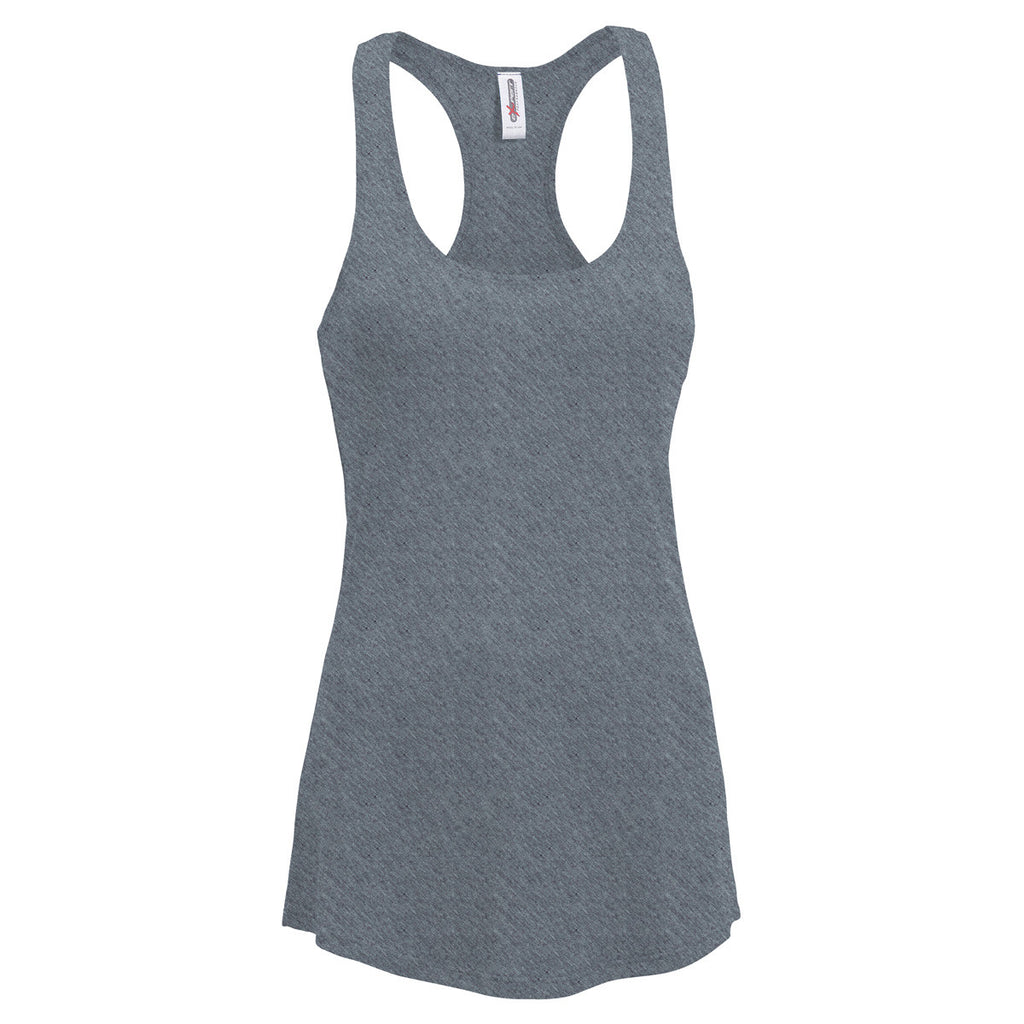 Get ready to sweat and flex in this Expert's Expert Women's Charcoal TriTec Racerback Tank that's long enough to stay tucked into your summertime skirts or workout shorts, but not so long that it juts out and reveal underneath. Its feminine contour flatters curves while drop tail hem provides superior back coverage. Lined with moisture-wicking material, this racer tank stays comfortable throughout and crafted from tri-blend polyester-cotton-rayon fabric that moves with you for an optimal workout experience. This tank was designed with an active lifestyle in mind and can be customized with a name or logo of your company for corporate events.The minimum order for this product is 12 pieces.