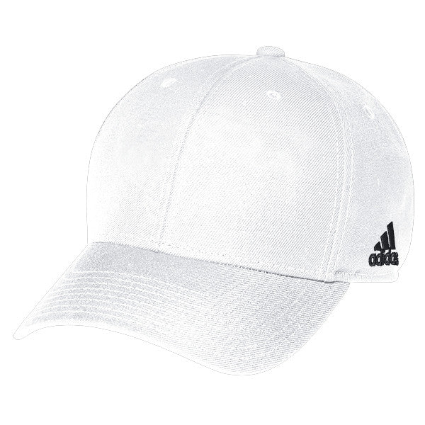 Celebrate your company's team spirit by giving the adidas White Structured Adjustable Cap during the holiday season. You attach the company logo to the front of the hat to promote unity. A moisture wicking sweatband quickly removes perspiration that builds up under the highly durable cap. Cotton twill feels soft against the forehead and the adjustable Velcro closure adapts to virtually every head size.