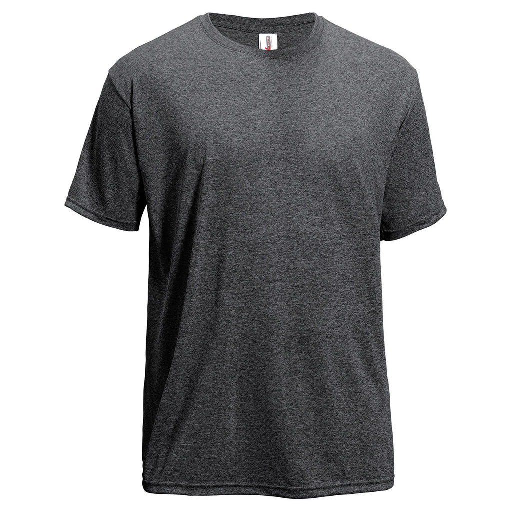 If donning a plain t-shirt makes you a bit dull and you're looking for a breathable texture, look no further than Expert Men's Heather Black Performance Tee. Whether you want to hang out in during the dog days or want to look stellar with a performance-driven top for your active lifestyle, this Heather tee should be your most-appropriate pick. It wicks away sweat and is equipped with BodyFreshe to inhibit odor causing bacteria. Crafted from cationic disperse Heather micro polyester. With our advanced customization services, this tee can sport your company's logo or message just the way you want.The minimum order for this product is 12 pieces.